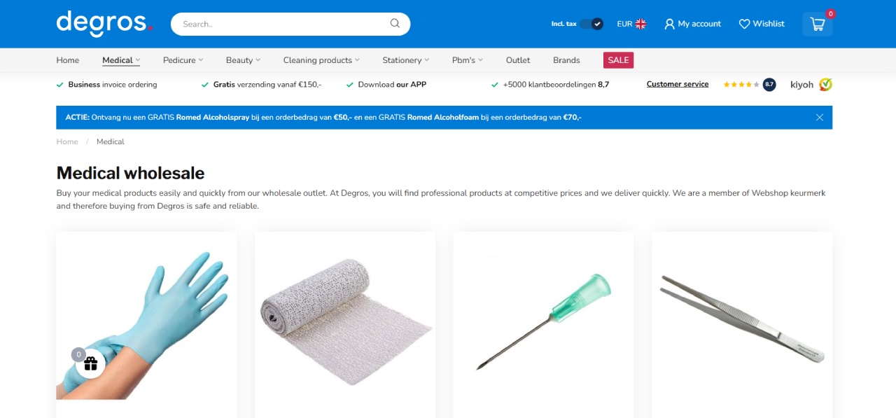 Een moderne en schaalbare webshop ontwikkeld voor Degros, gericht op de online verkoop van pedicureproducten in Nederland.