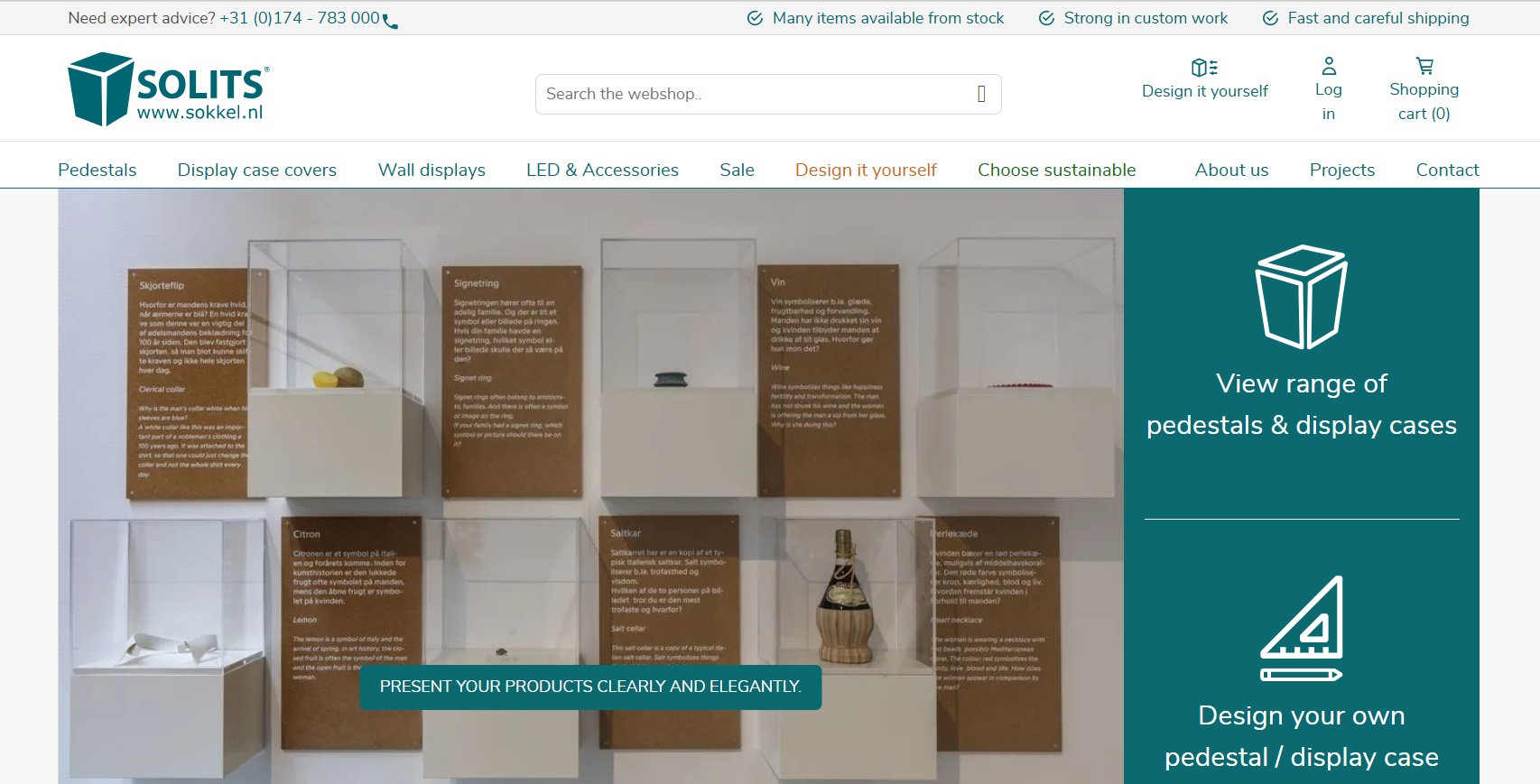 De website is ontworpen om het uitgebreide assortiment sokkels op een overzichtelijke en inspirerende manier te presenteren.